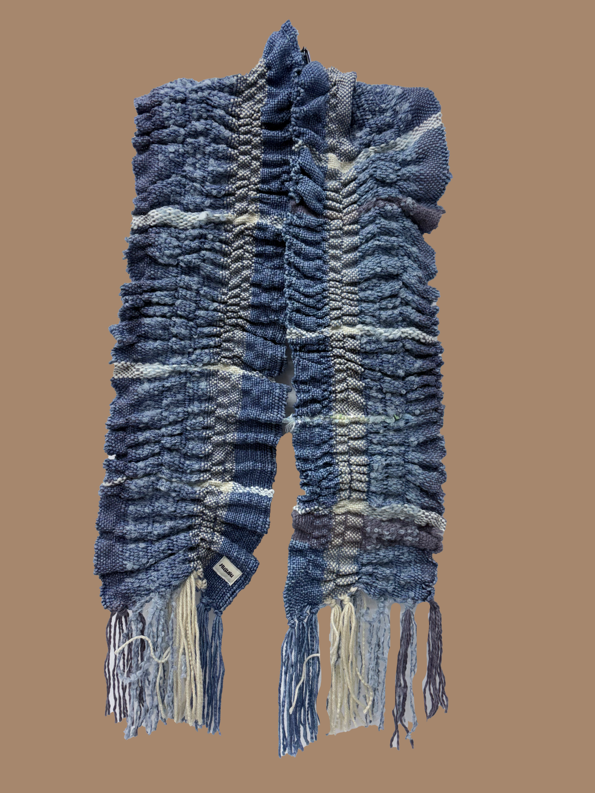 Handwoven with care, this scarf blends airy light blue, white, and gray fibers into a fluffy, cloud-like texture. Inspired by the quiet beauty of frosted mornings, it’s perfect for adding a gentle, cozy touch to your fall wardrobe.
